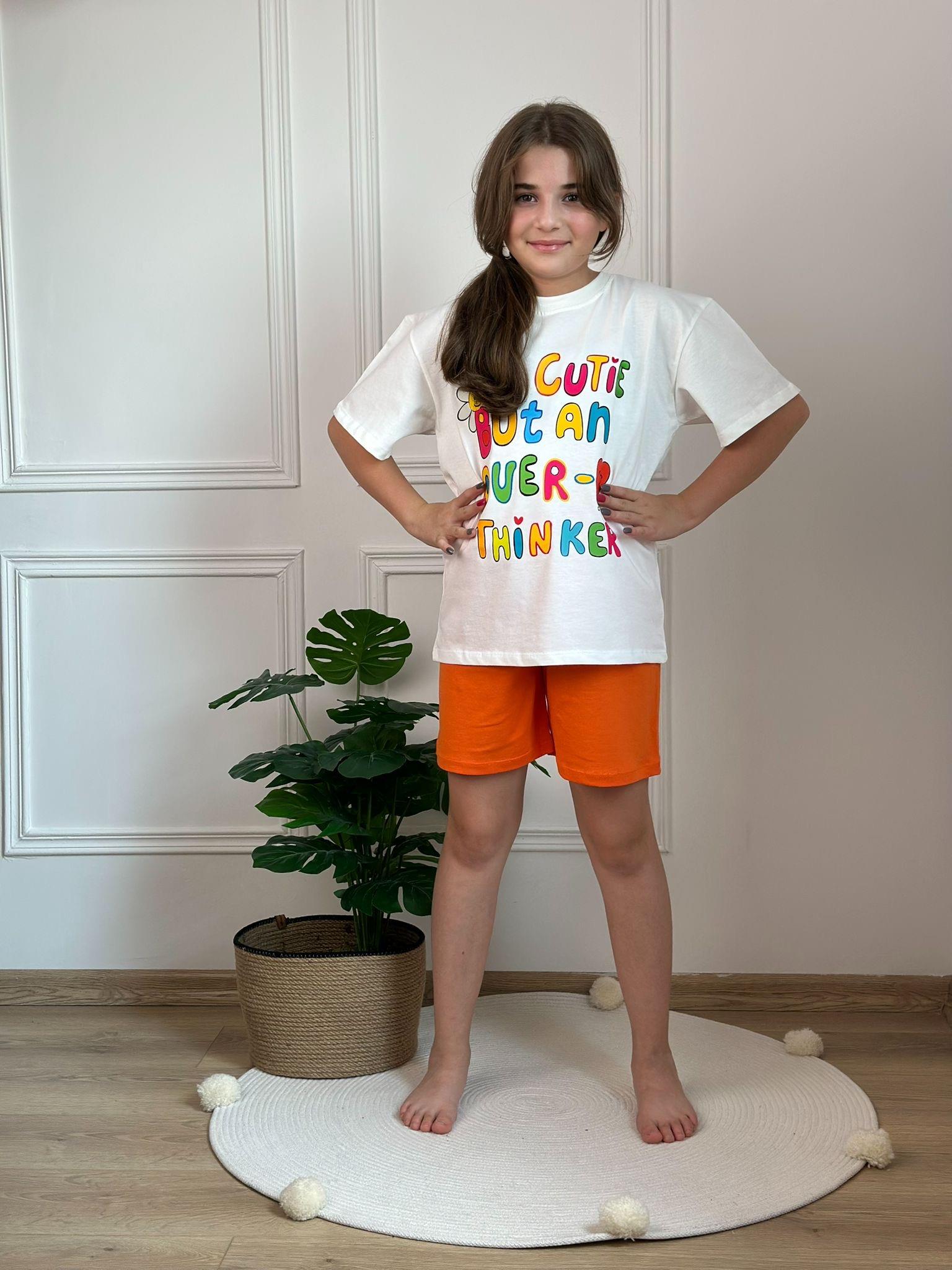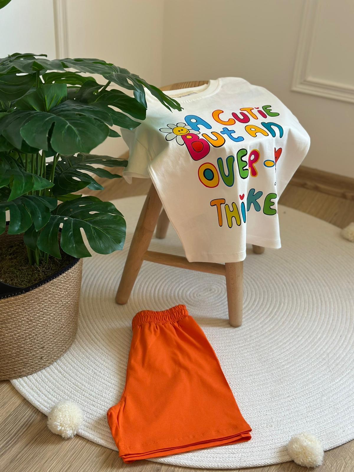 A Cutie But An Over Thinker Baskılı Şortlu Takım