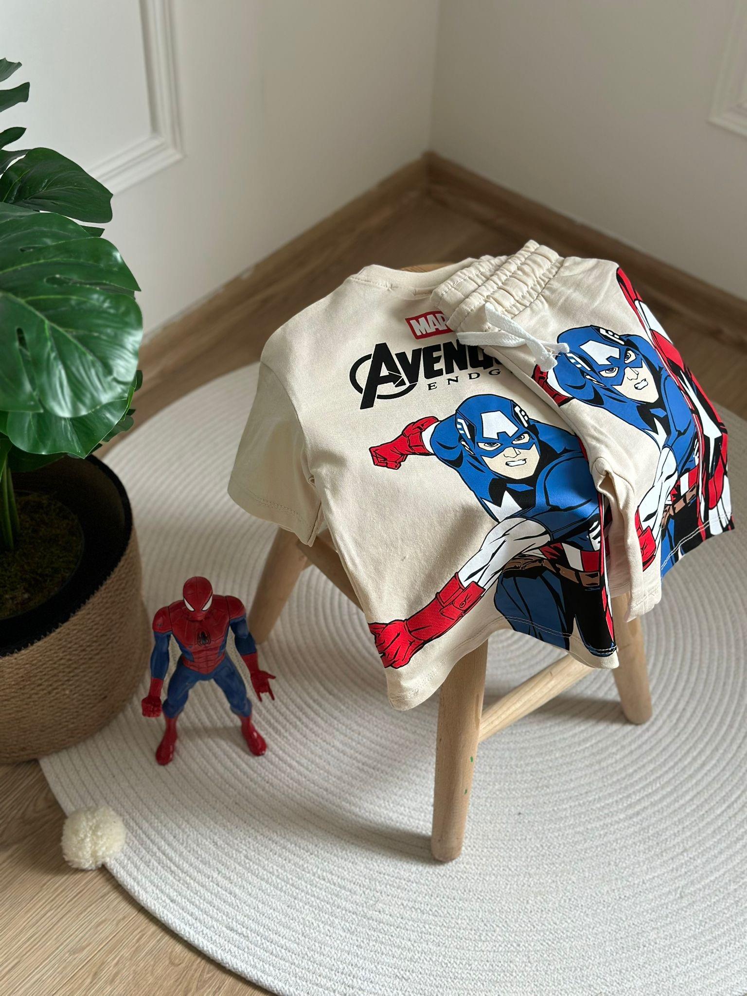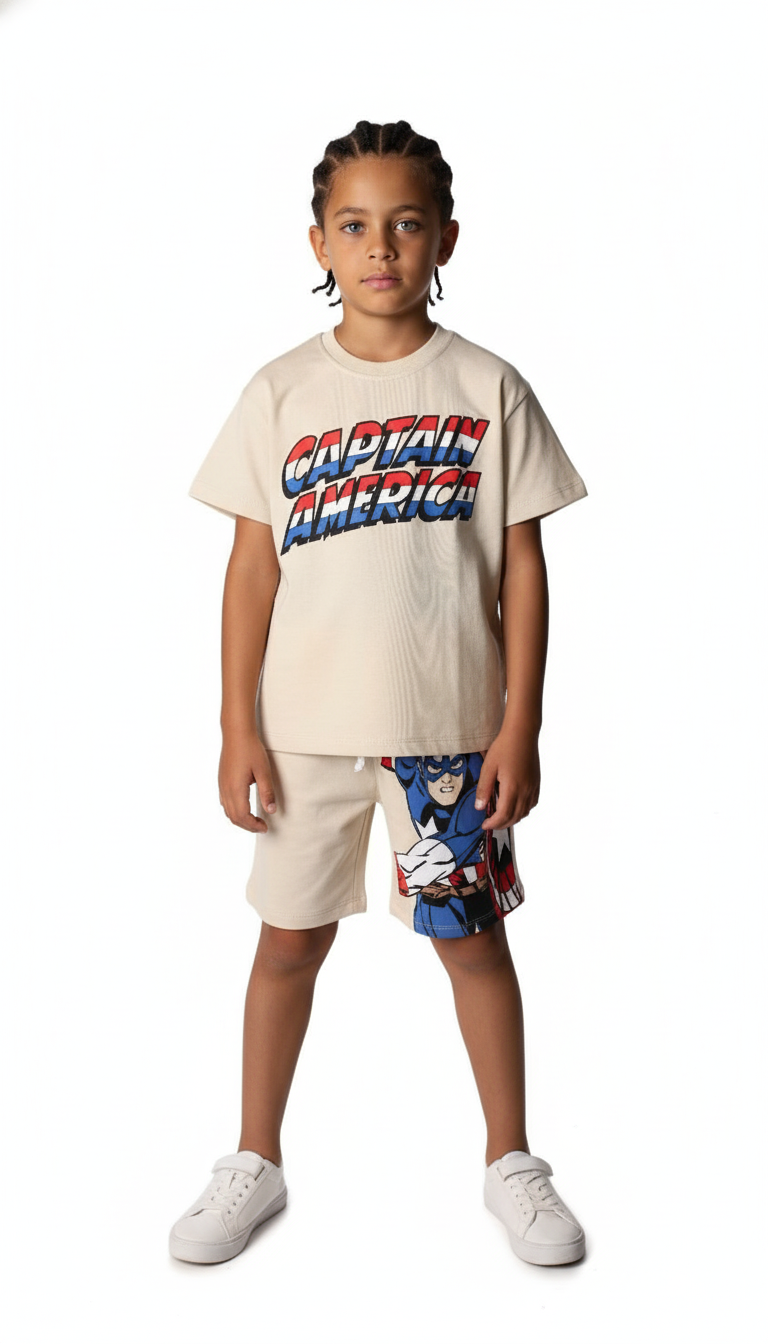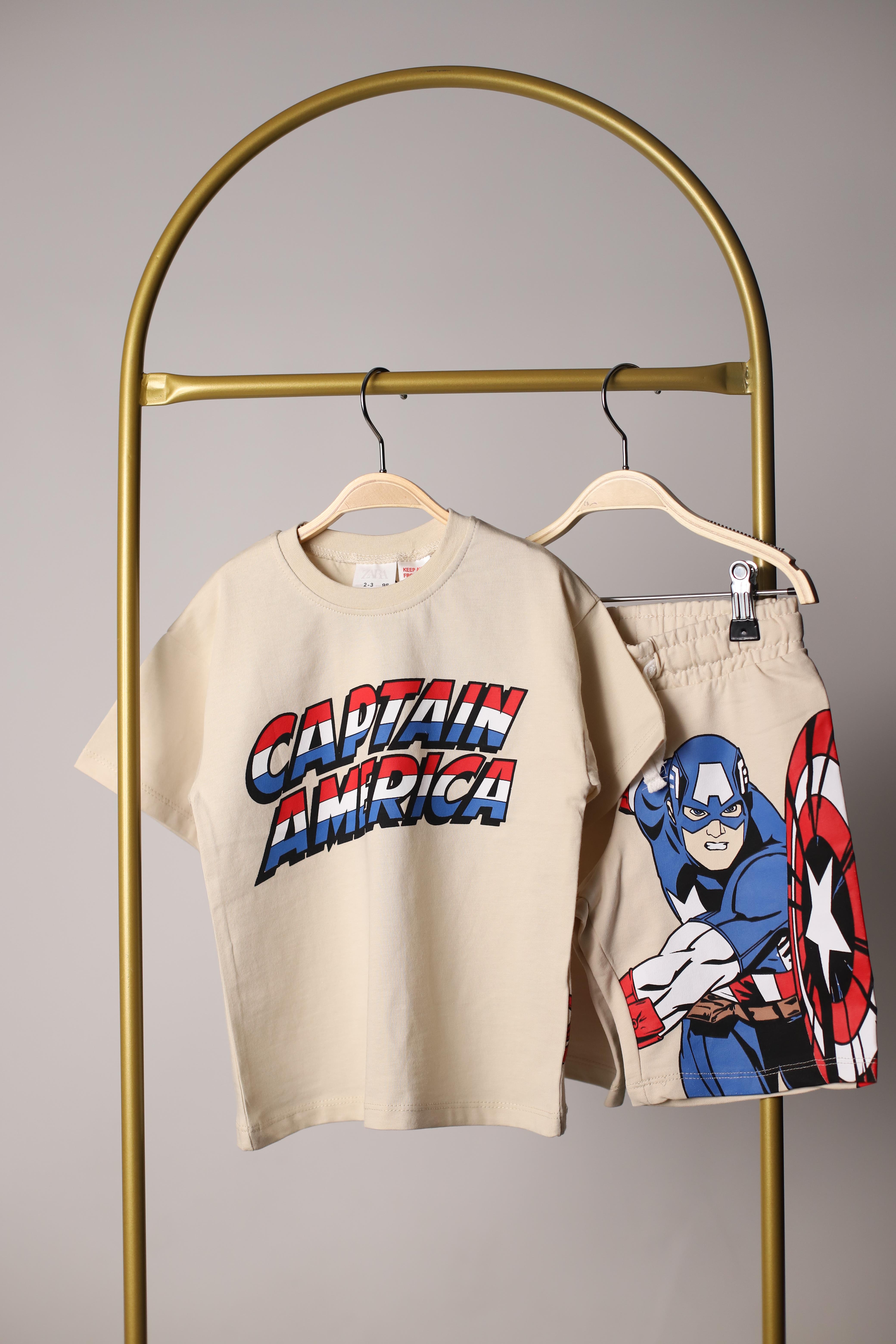 Captain America Sırt Baskılı Şortlu Takım