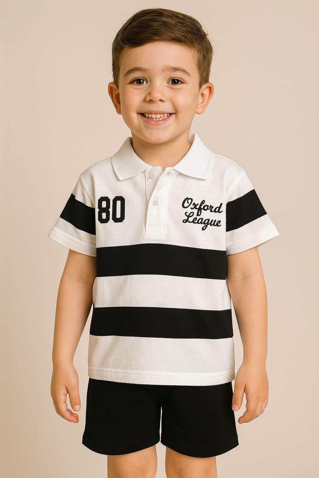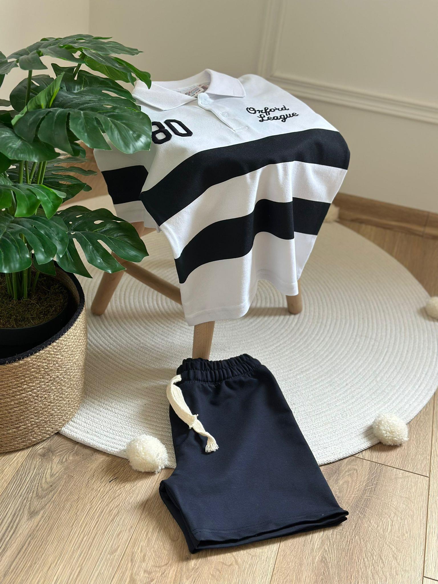 Çizgili Polo Yaka Şortlu Takım