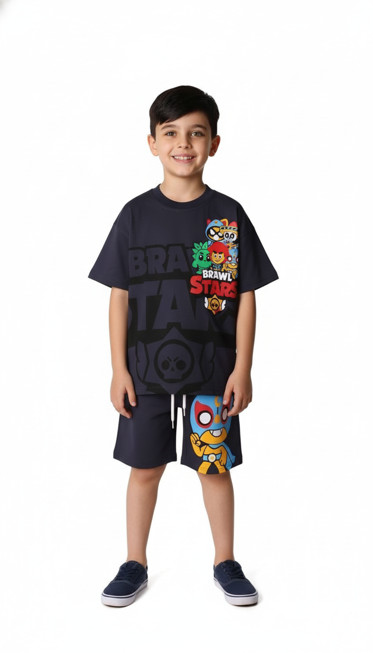 Füme Üzeri Renkli Brawl Stars Şortlu Takım