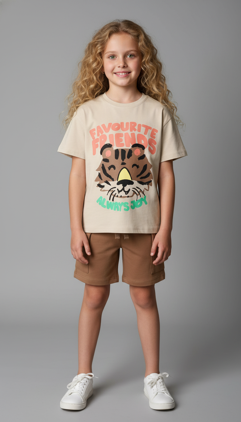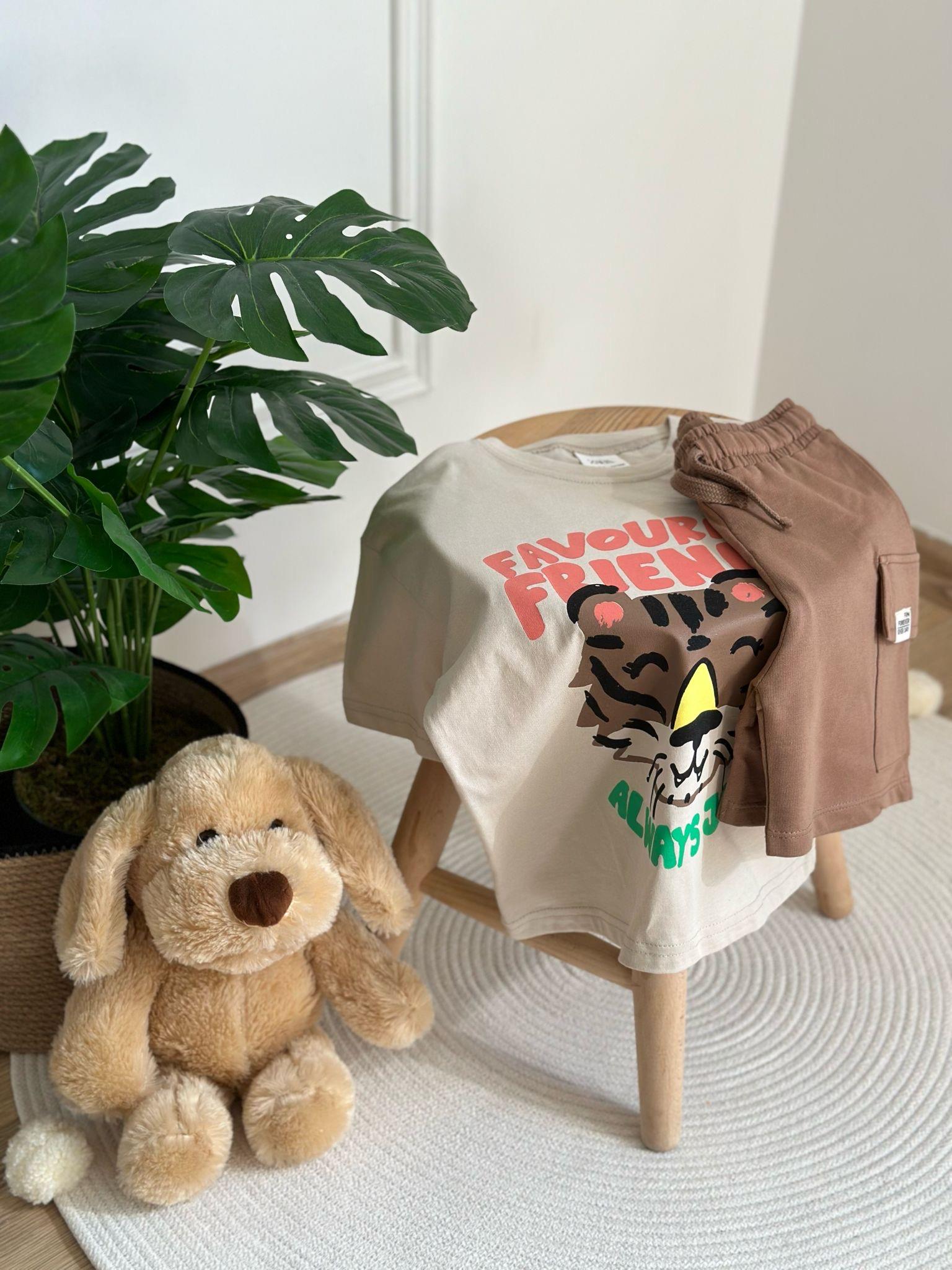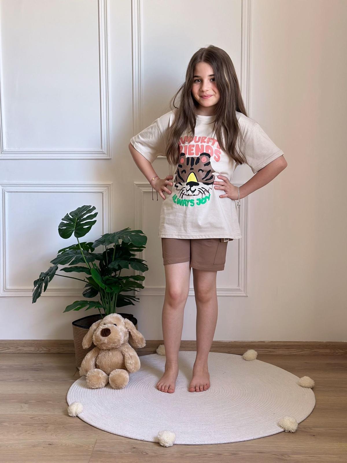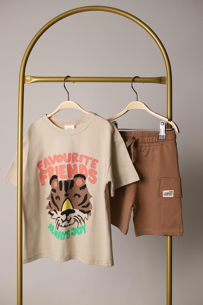 Kaplan Baskılı Kargo Cepli Şortlu Takımı