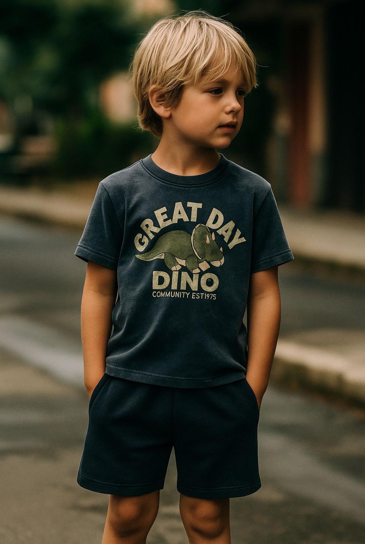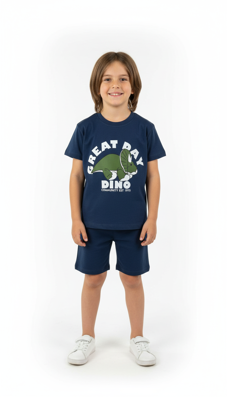Lacivert Dino Şortlu Takım
