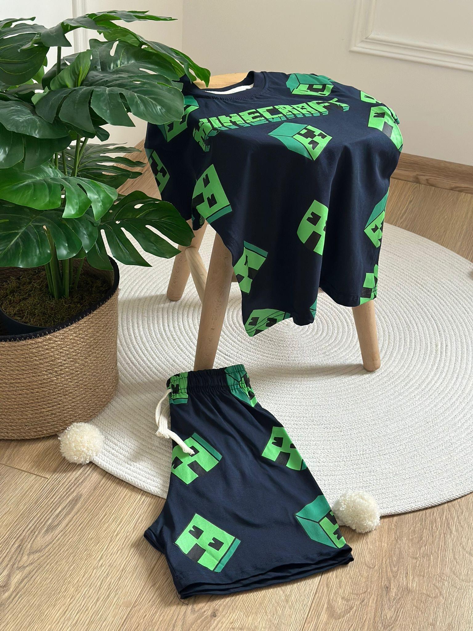Yeşil Minecraft Şortlu Takım Yeşil Minecraft Şortlu Takım