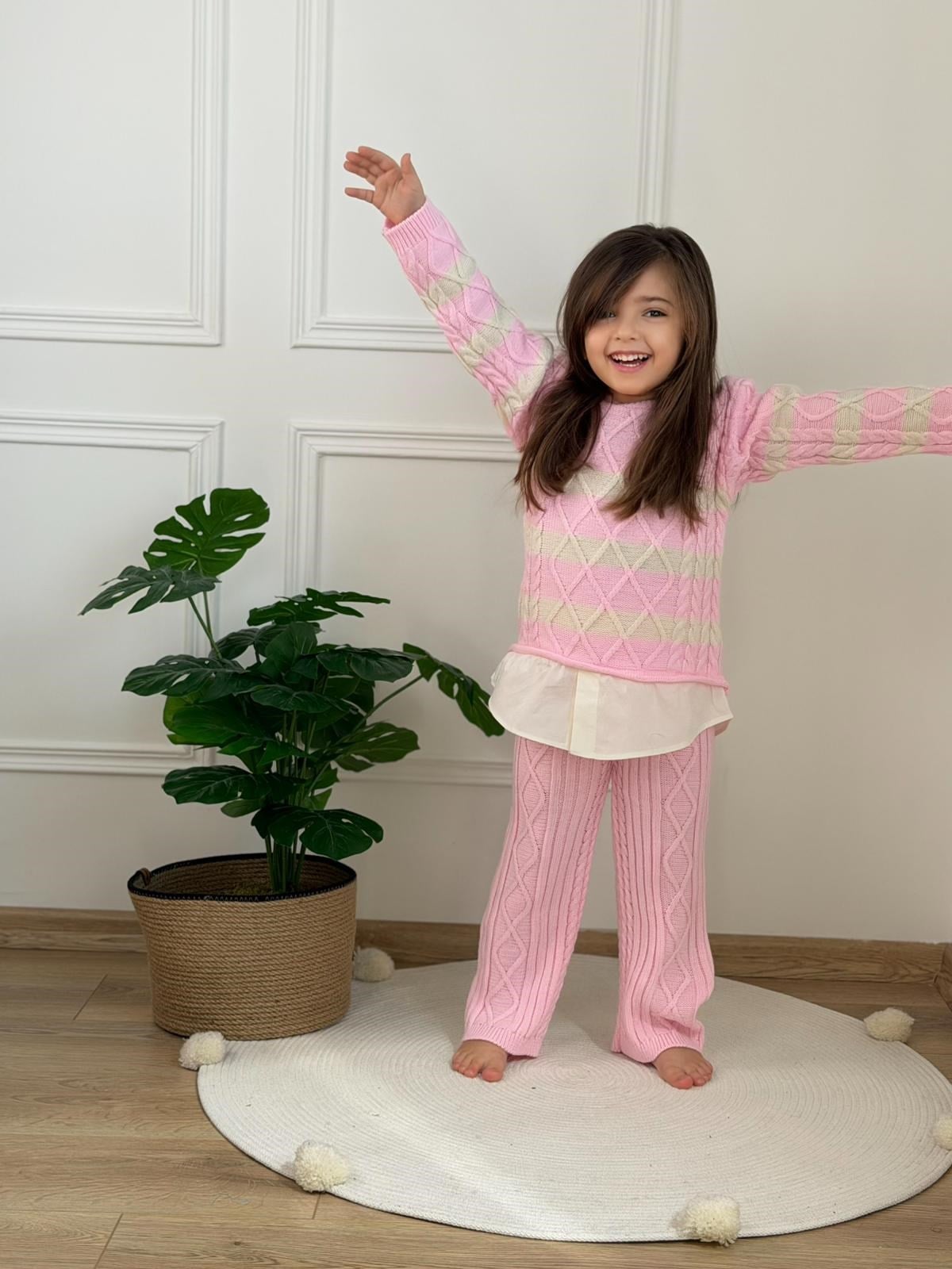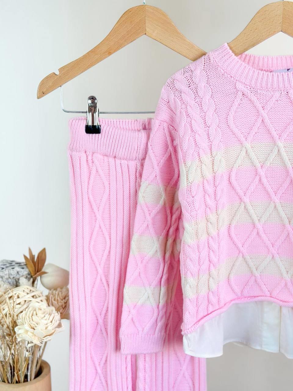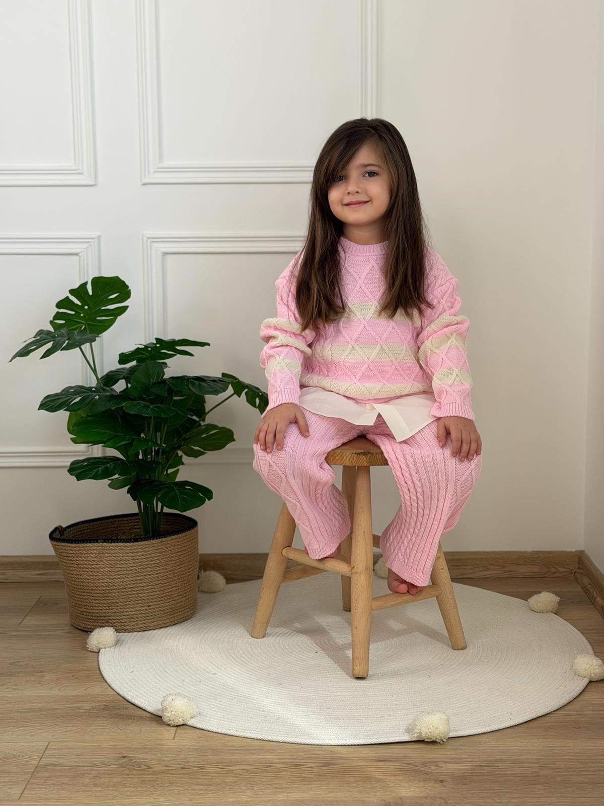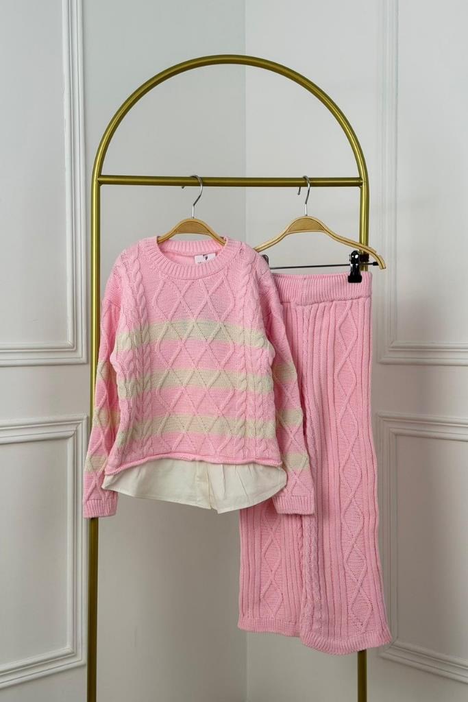 Pembe Çizgili Triko Takım